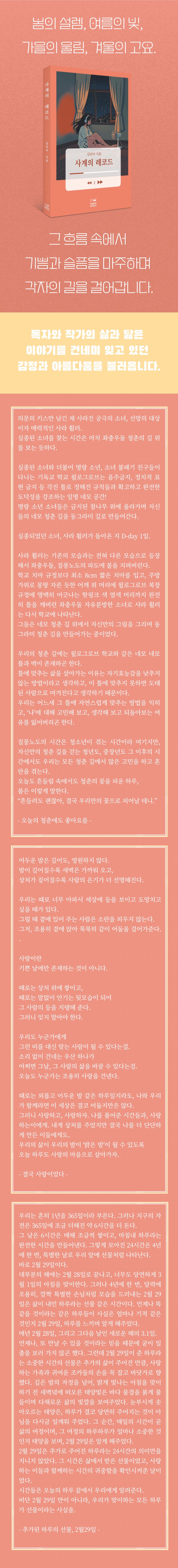 계절이 다시 돌아올 때마다 꺼내 듣고 싶은 한 곡처럼, 《사계의 레코드》는 독자와 작가의 삶과 닮은 이야기를 건네며 잊고 있던 감정과 아름다움을 불러옵니다.